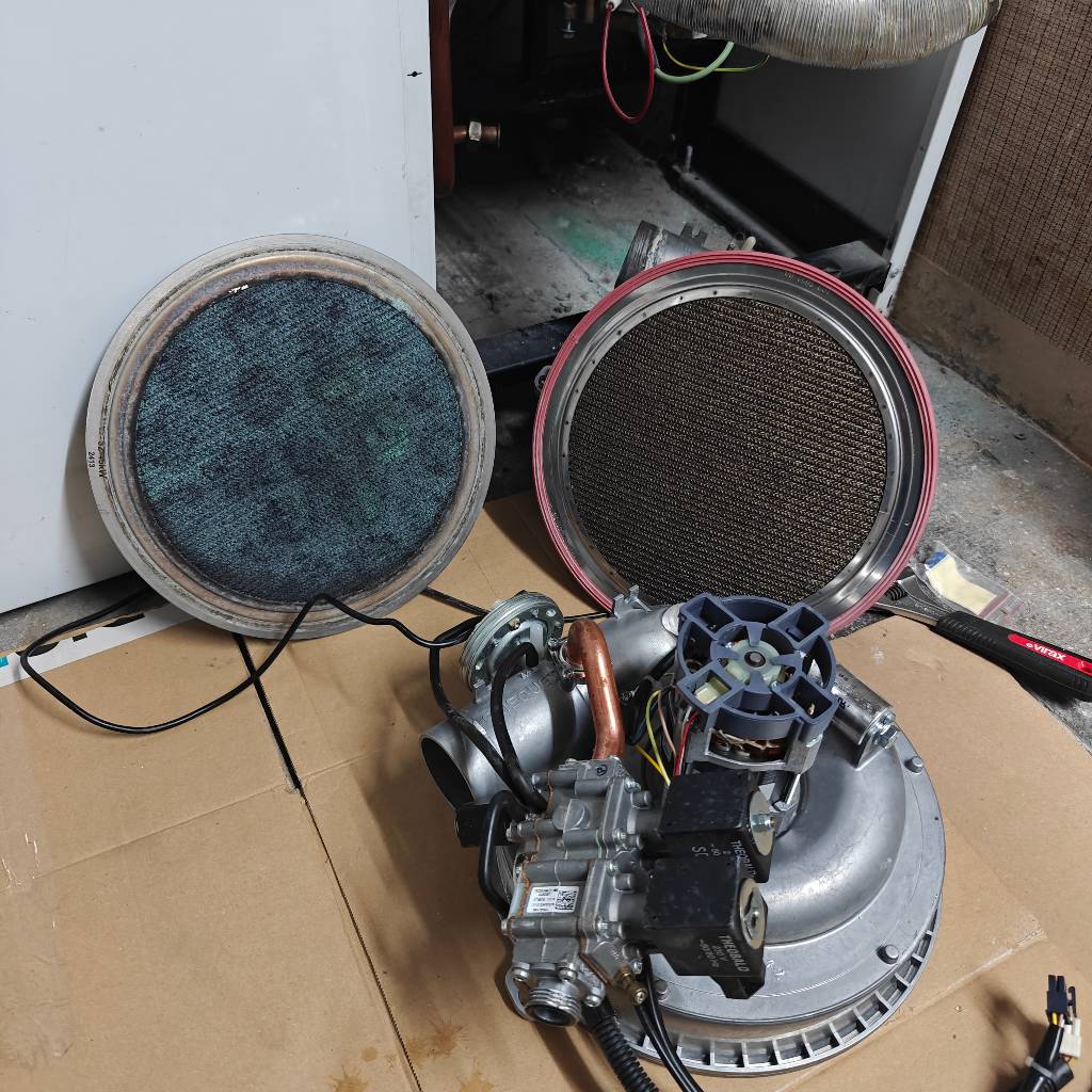 Au moment du diagnostic, l’une des chaudières affichait un défaut capteur d’air. Après contrôle de l’appareil et de son environnement, nous avons constaté qu’elle avait aspiré de l’eau par la ventouse, ce qui a entraîné une dégradation de plusieurs éléments essentiels au bon fonctionnement de la chaudière. Le brûleur, le bloc gaz ainsi que les capteurs air et gaz ont été touchés par cet incident.