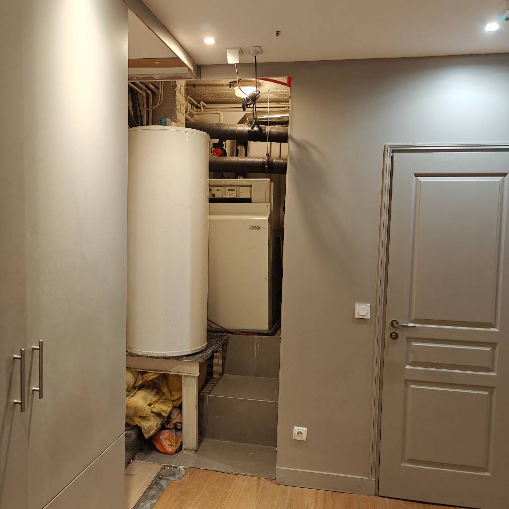 Nous sommes intervenus dans un pavillon du quartier Chézy à Neuilly-sur-Seine (92200) pour le remplacement complet d’une ancienne installation de chauffage et d’eau chaude sanitaire. L’équipement en place comprenait une chaudière PHEONIS de 90 kW de marque SLCF ainsi qu’un ballon de 300 litres, devenus trop importants par rapport aux besoins réels de l’habitation et moins adaptés aux exigences actuelles de confort et de consommation.